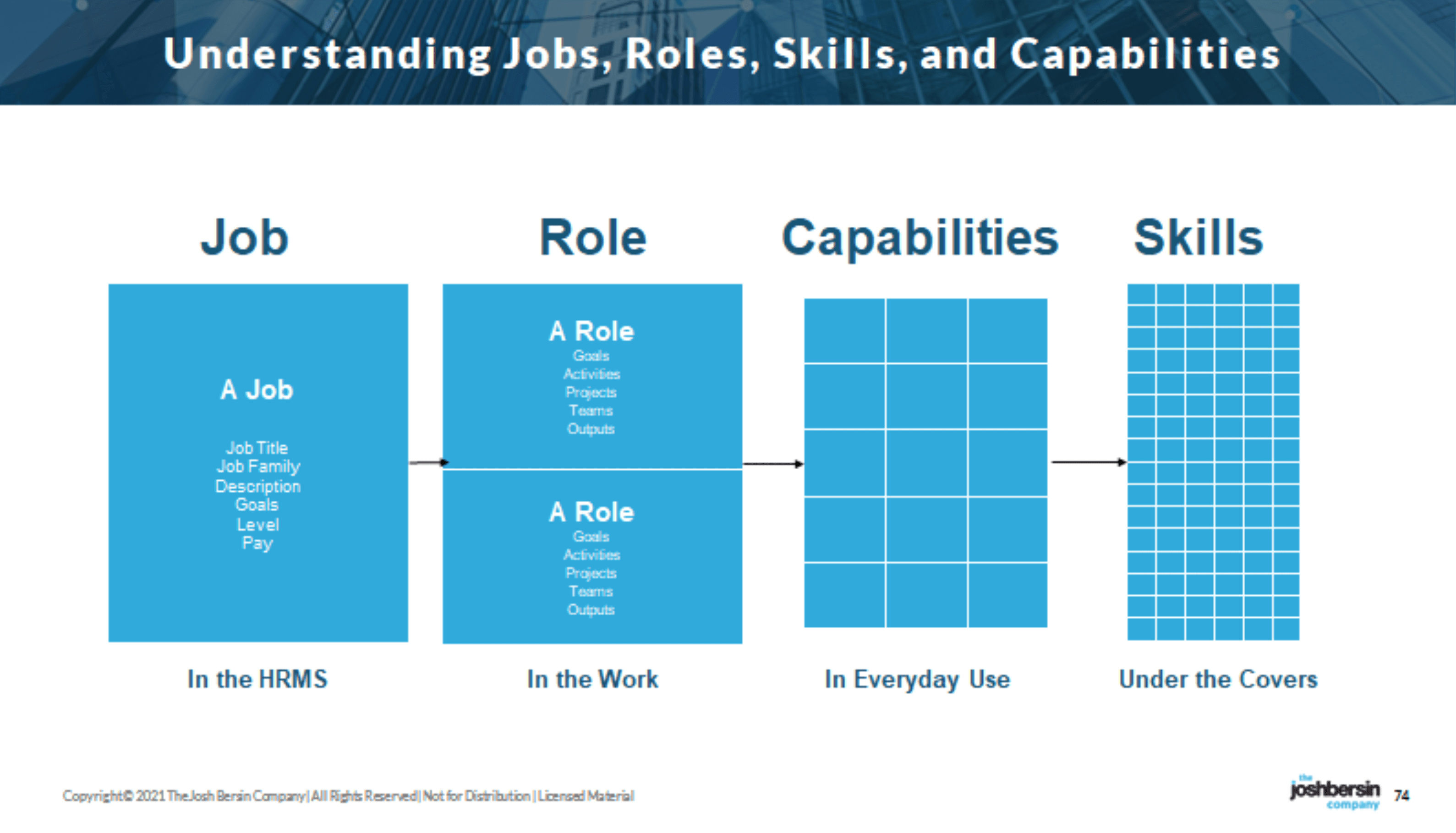 Skills should not be confused with capabilities, which are the business-oriented competencies that group skills into meaningful terms that are well recognized as criteria for success in a job or role.